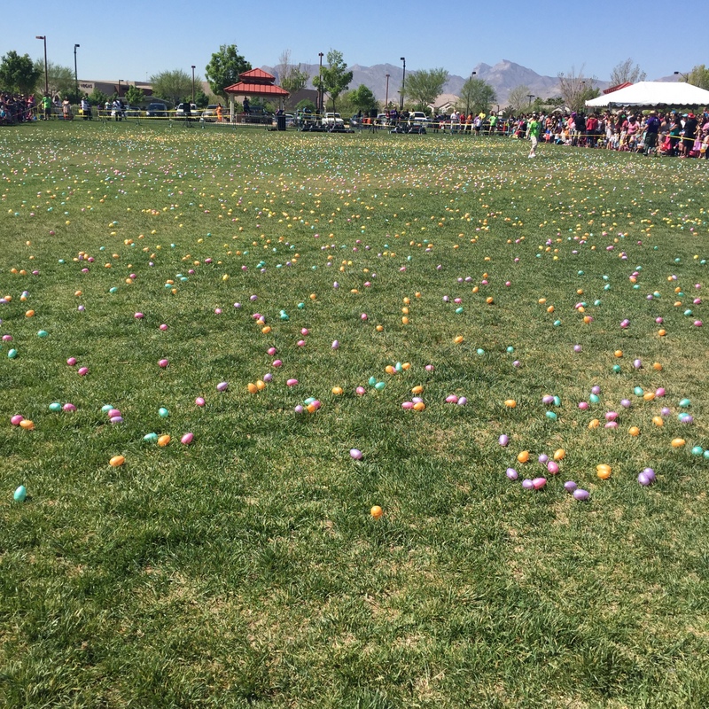 The Saturday before Easter we found a giant Easter egg hunt at Centennial Hills Park. Thirty thousand eggs divided into hunts for 3 age groups. H got two eggs, and we were thrilled to get those. It was a HUGE event.