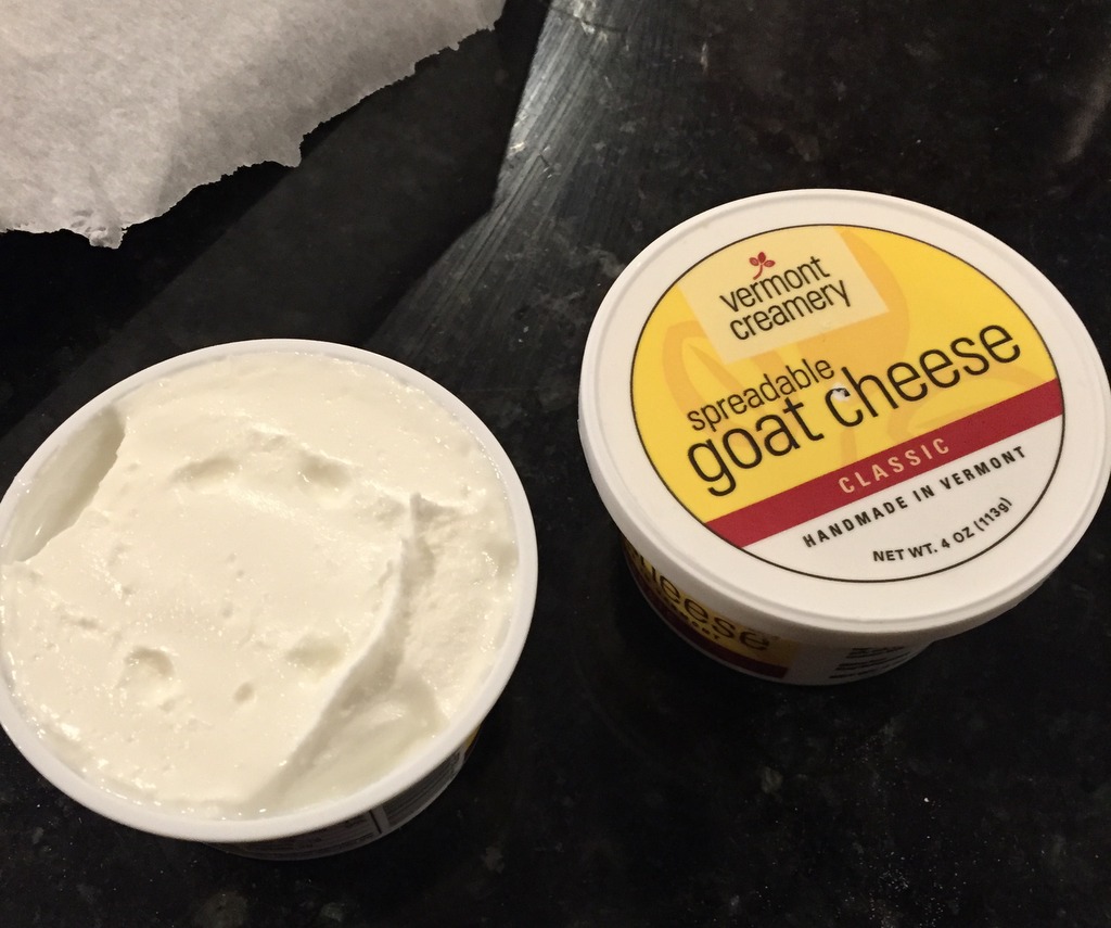 8 oz plain creamy goat cheese at room temp (Ina recommends Montrachet, I used Vermont Creamery)