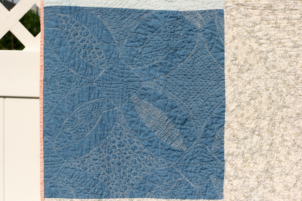 But so worth it. I free motion quilted this baby, and every section of white is a different quilting pattern (I repeated a handful of motifs throughout).