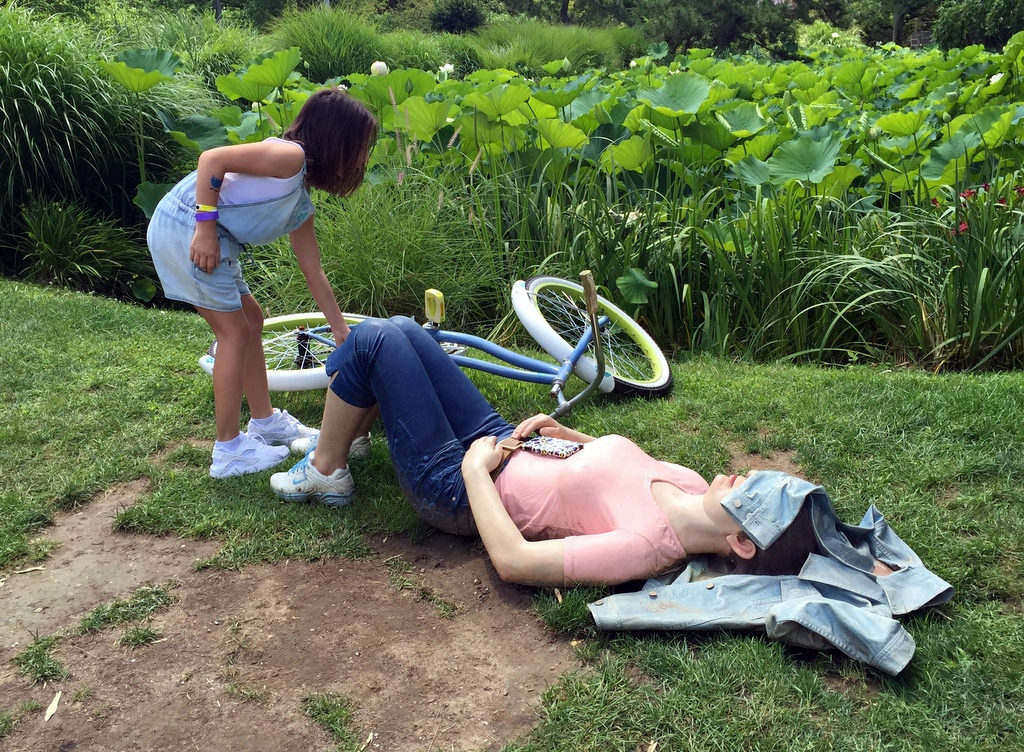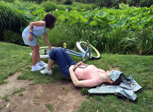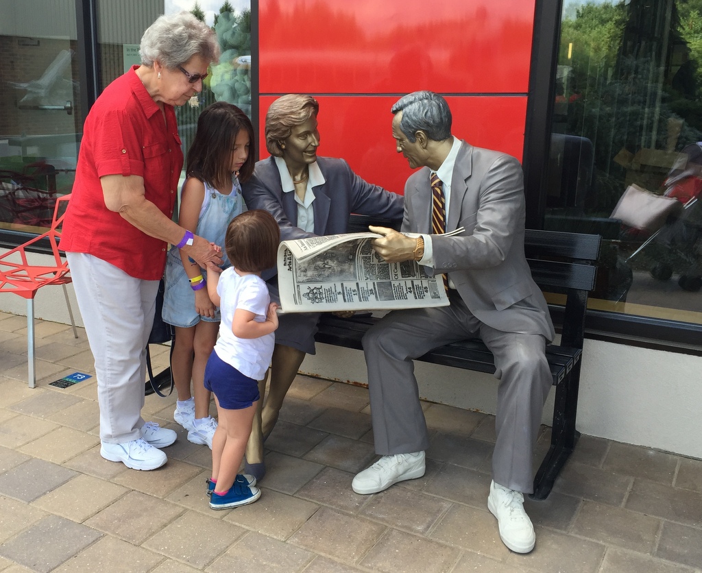 Seward Johnson, who founded Grounds for Sculpture, had an exhibition of his people sculptures scattered around the grounds. July is the final month for that collection of 150 pieces, and it’s such a shame. I would love them to be a permanent part of the grounds. They constantly took us by surprise. From a distance they just look like visitors, and then you do a double-take when you realize.