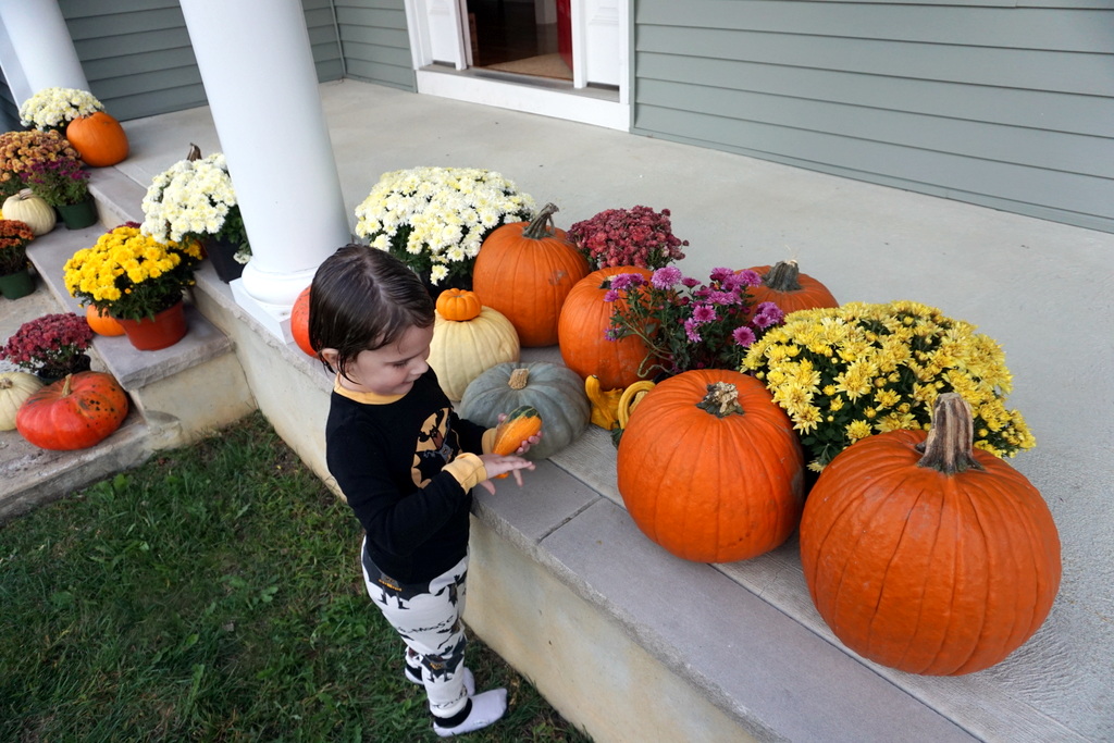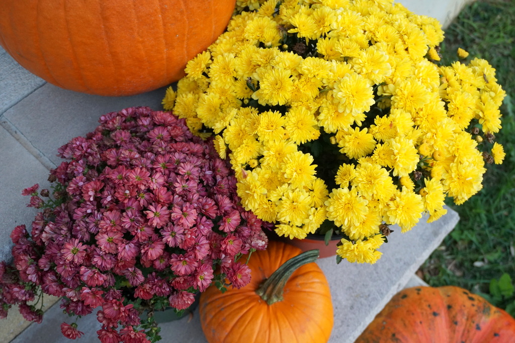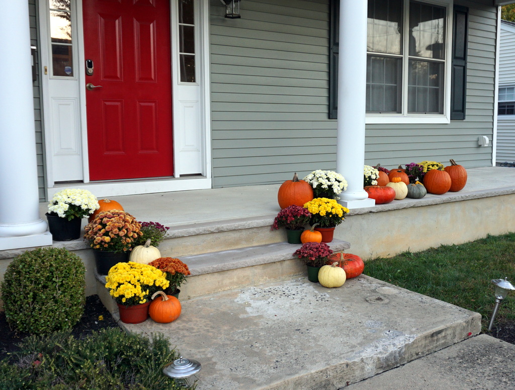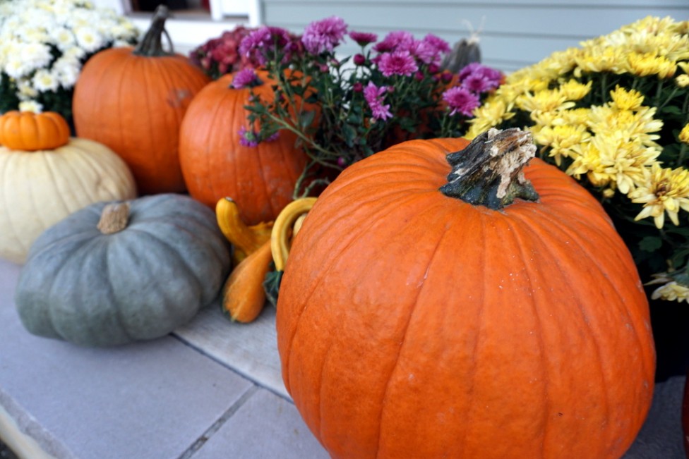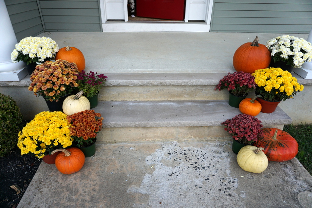 Porchiness is not a word, but let’s just pretend. Here’s my fall porchscape (pretty sure this is also not a word, but see if I care). Some of these mums and pumpkins have fallen on hard times since I took these photos a few weeks ago, but it is still so seasonal out there.