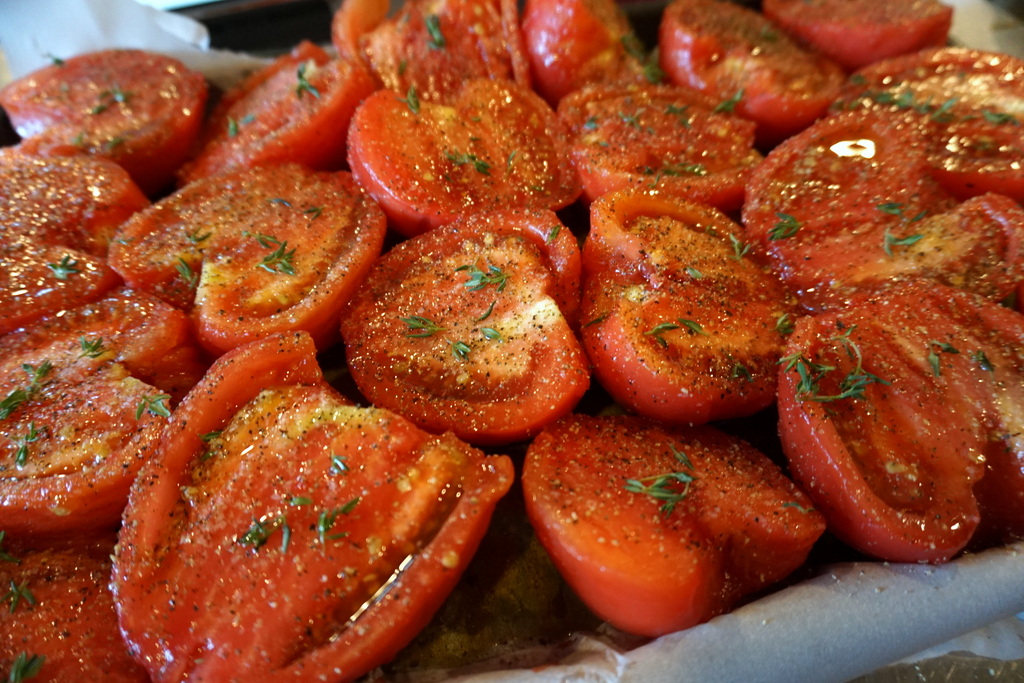 *Another note: I may have gone overboard with the drizzling. So the bottoms of my tomatoes were softer than I think they would’ve been otherwise. But they were still amazing. Next year, I will drizzle.