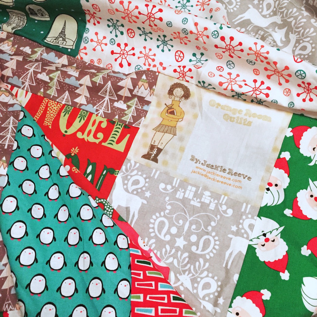 I love the pieced backing, I had this idea that it would basically be reversible. One side would be an ordered grid, and the other side would be festive mayhem. That’s my new band name, btw.