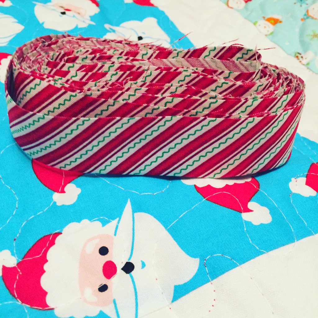 I’ve finished all the quilting on this Christmas quilt, and I’ve made up the binding. So now I just need to bind this quilt, and it’s ready for the couch!