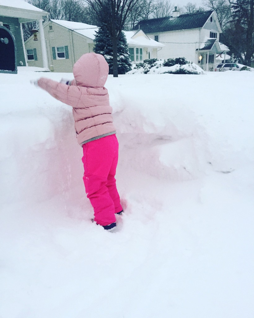 So much snow, all of the snow. Three days with everyone snowed in at the house. I’ve made chili, I’ve made pizza, I’ve cleaned, we’ve played, we’ve napped. Jonas dropped 20-some-odd inches of snow in our neighborhood, with crazy snow drifts taller than H. It’s been cozy and also frustrating to be so off our routine. But, the snow play has been well worth it.