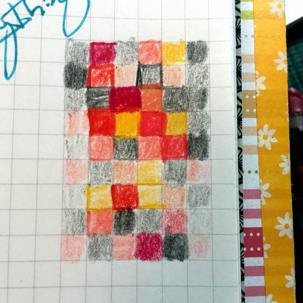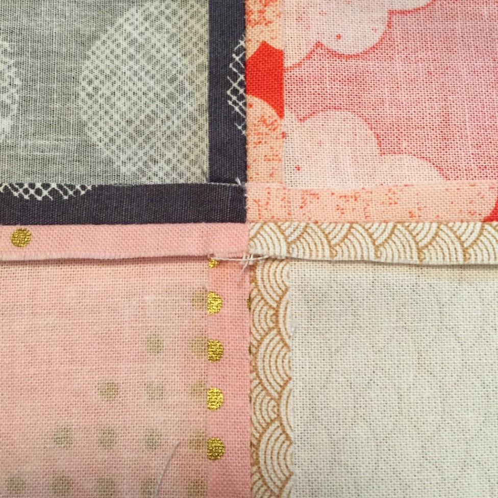 I saw this color scheme in a quilt from Jacqueline at Bind, and I just loved the colors. She used a Lizzy House Catnap fabric bundle, but I didn’t want to buy new fabric. I sketched up a design for this, which I’m not ready to reveal just yet. But I had all the fabrics in my stash already, so this was a great way to use some of it up.