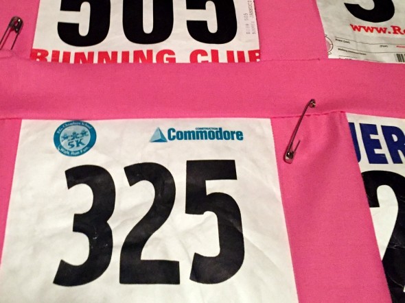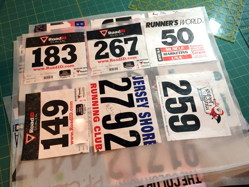 I (very carefully!) ironed fusible interfacing to the back of all the race bibs to try and give it a little more stability and help them resist tearing. This also let me lightly press the bibs.