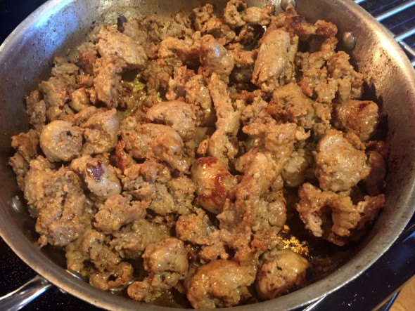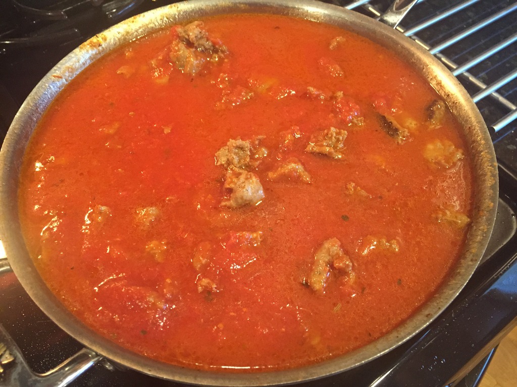 In the stovetop-safe insert of slow cooker (or, in my case, just a regular frying pan) warm the olive oil over medium heat. Add the sausage and cook, breaking up any large chunks with a wooden spoon, until the meat is browned, 10 to 12 minutes.