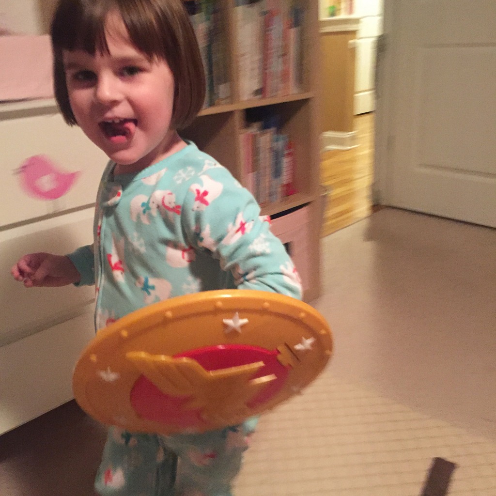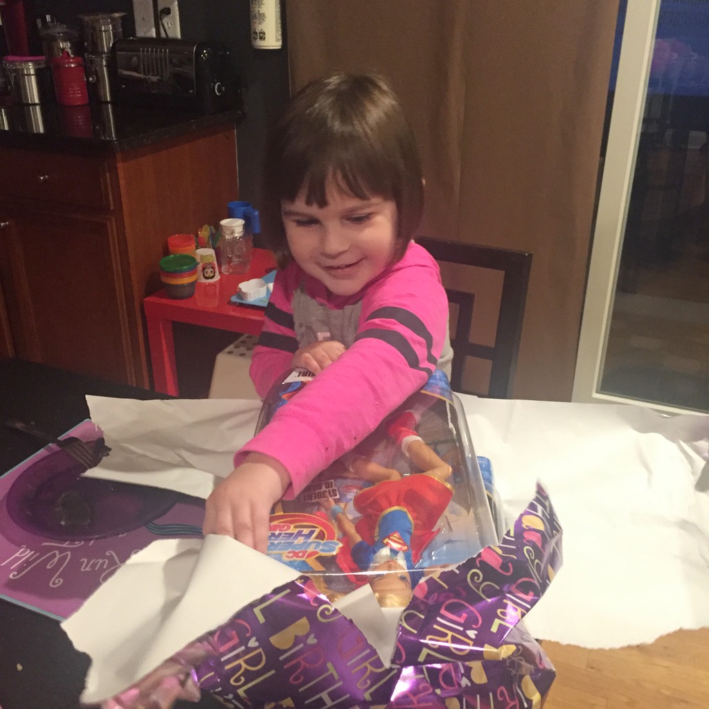 4th birthday 4She asked for birthday donuts instead of a cake, and there was a general superhero theme to her entire festivities this year. Like her new favorite Wonder Woman shield.