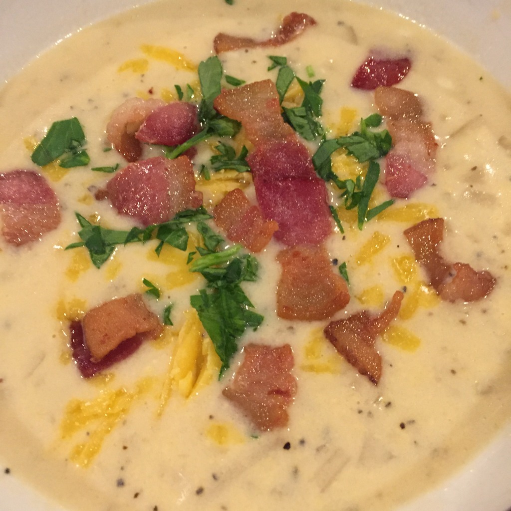 I think next time I would run my immersion blender through this soup for a bit of a thicker texture with fewer shredded potatoes, but otherwise this was pretty good on a chilly night. I’d had a bag of shredded potatoes in the freezer for a while, from some long-forgotten recipe I was going to make, so this was great for using up what I had on hand. We both love potato soup, and I never would’ve thought about shredded potatoes.