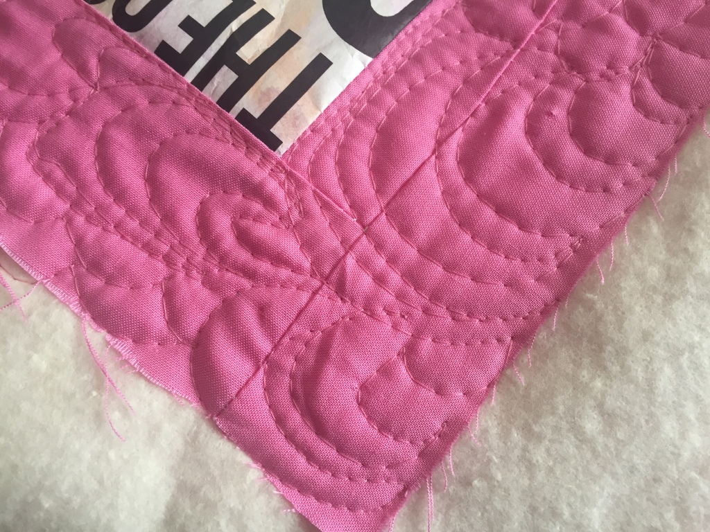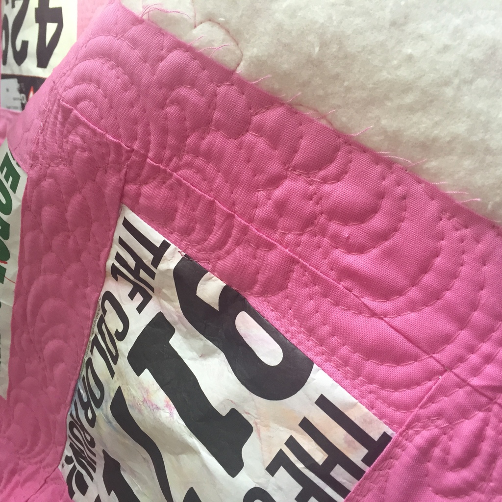 This was extremely pink and flat when I finished piecing the top. I was actually worried that it wouldn’t come together. But once I started the quilting, it really gained some dimension and texture. The quilting woke this right up.
