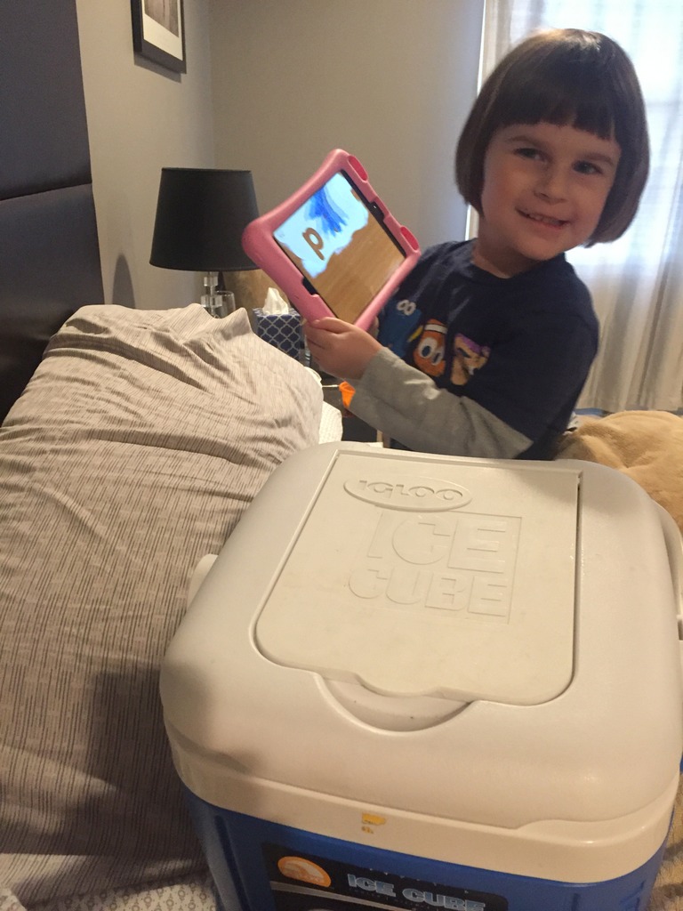 But the family has been amazing. Adam’s been packing me a cooler with cold drinks and snacks to keep me going. H has been keeping me company off and on, she’s a little nervous around my crutches and her new, less mobile mommy. But she’s getting lots of time at Nana’s house, which is basically DisneyWorld as far as she’s concerned.