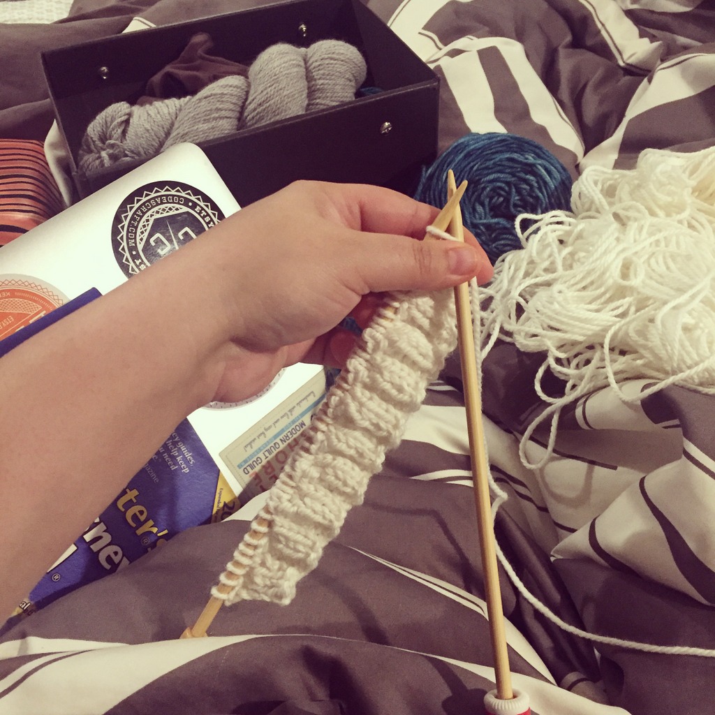 And, I’ve started knitting again! I’m working my way through the first season of Outlander while I reacquaint myself with my knitting needles. I can’t use my sewing machine right now, but I need to keep my hands busy.