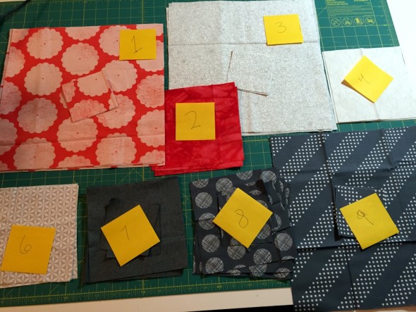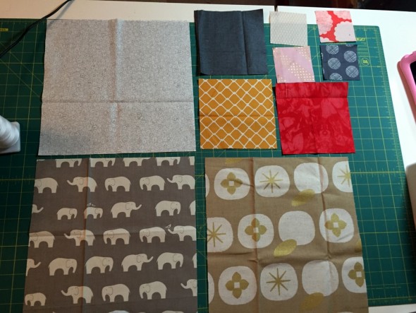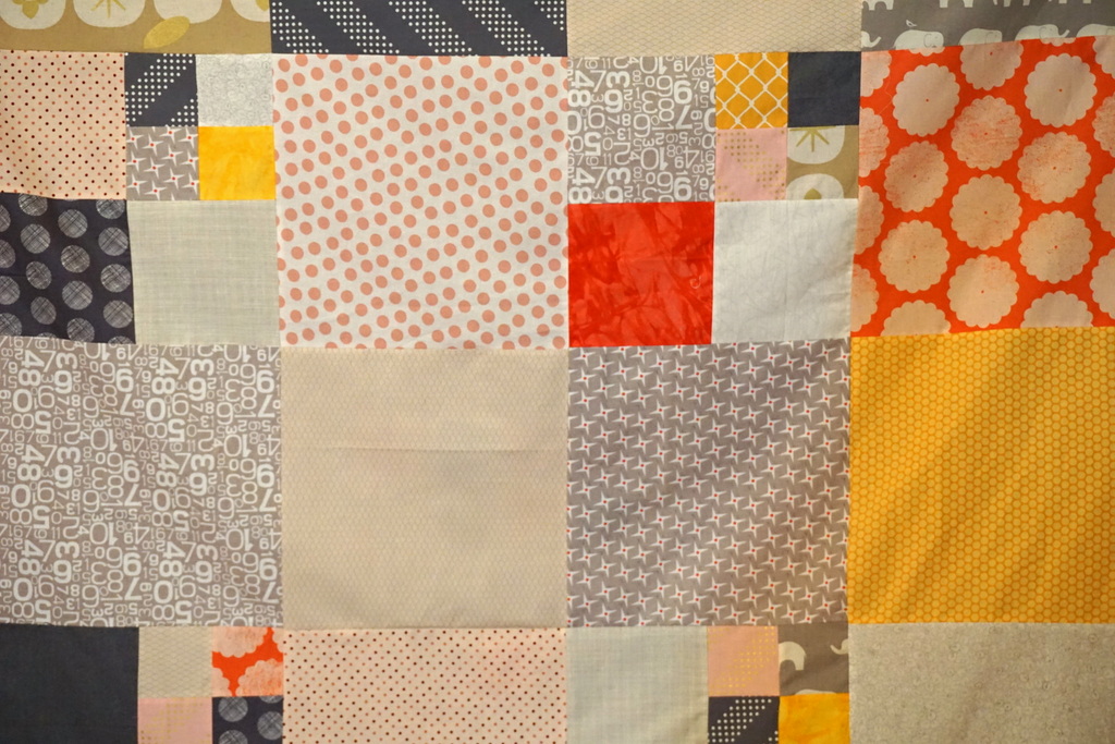 I started this as a secret project back in February, but it’s going to be a tutorial here on my site once I’m finished with it. This whole quilt top came together really quickly, with simple squares in 3 sizes: 3.5″, 6.5″, and 12.5″.