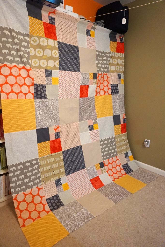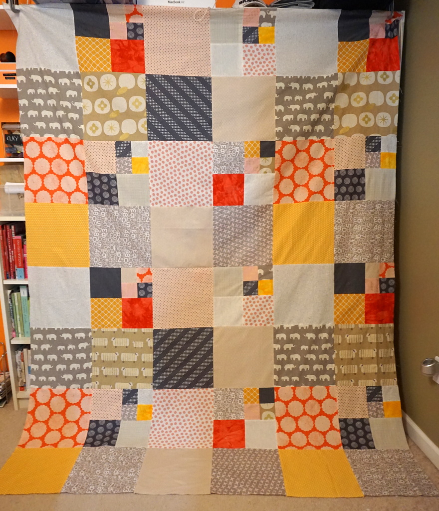I have to piece the backing for this one, which will use most of the remaining scraps of fabric from this top. I love using what I’ve got on hand. Then I’m going to use it to experiment with some quilting, and put a tutorial together for it. This will look great on our couch when it’s finished!