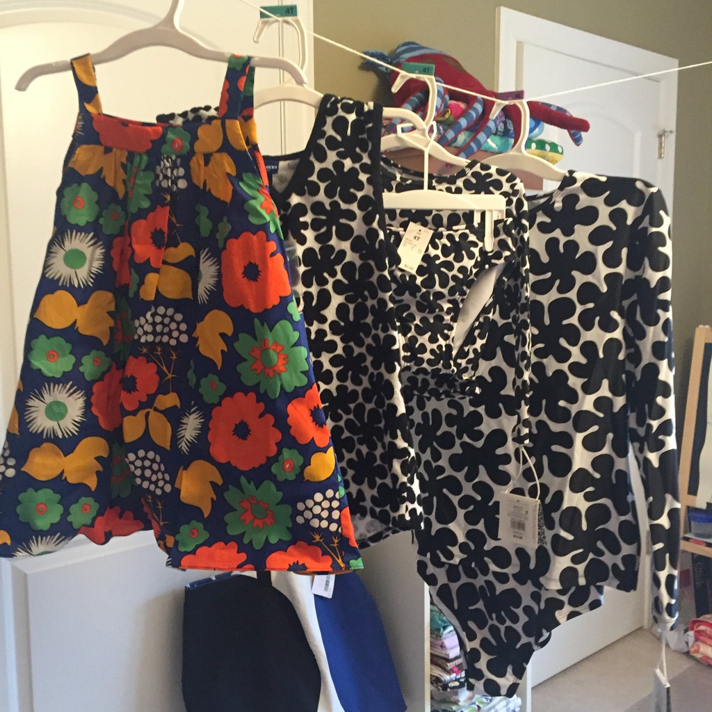 This line sold out fairly quickly. Not as quickly as others I’ve coveted, but it was gone in a few days. And I happened to be laid up with this knee at the time. So, I did manage to score everything I wanted to get, but I had to hobble around to a couple of different stores to get it. Matching black floral long sleeve rashguard swimsuits for H and I (I can only get away with matching mother/daughter stuff for so long). And a swim coverup for her.