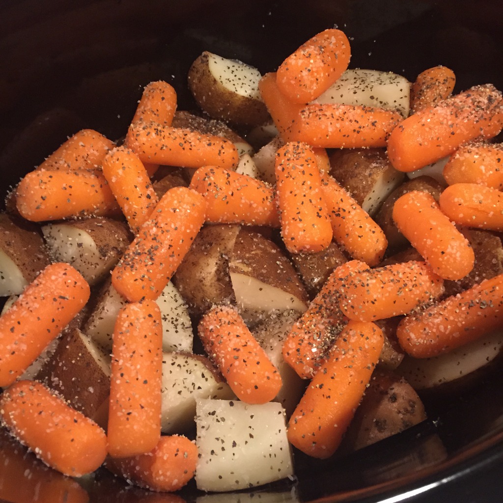 Place potatoes and carrots in a 5-qt. slow cooker. Sprinkle with salt and pepper.