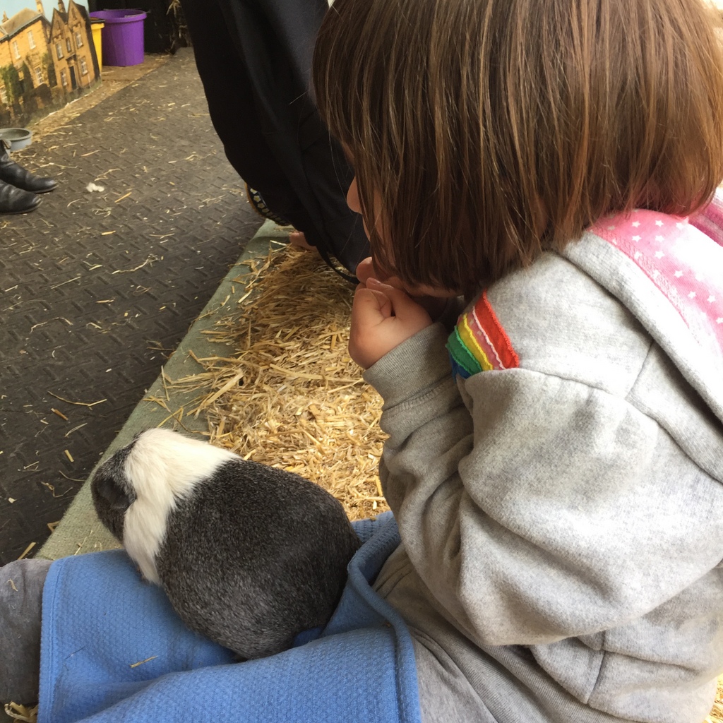I puttered around the house while my in-laws took H around the Farmyard to play with animals. She had the best time with a guinea pig named Bubbles, and now I want to get her a guinea pig.