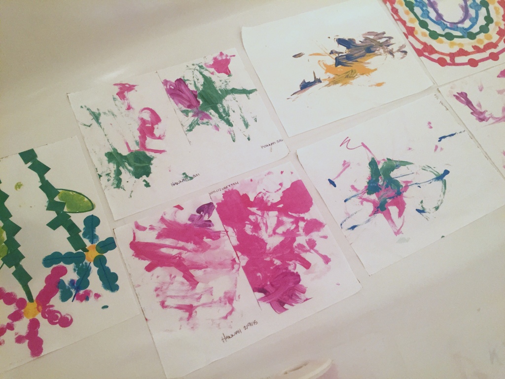 I still didn’t have time to make one, but now I really couldn’t put it off. My original plan was to scan H’s old toddler drawings and print them out on fabric sheets. I’d actually bought the sheets last year, I really did plan on making her a quilt. The images looked cool, but the Jacquard fabric sheets I’d bought bled.