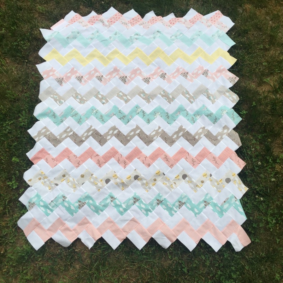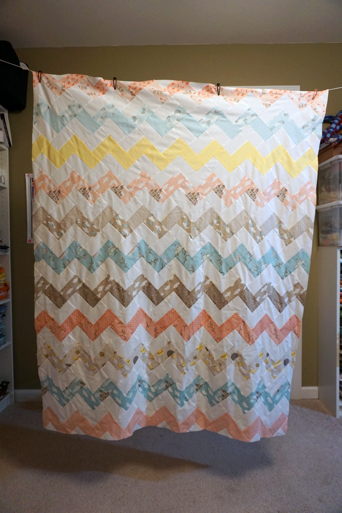 So this chevron quilt is from Crazy Mom Quilts Zig Zag Quilt tutorial. I know usually chevrons are made with half square triangles, but I just could not face HSTs at the moment. I needed to get this quilt done ASAP. And this tutorial has been fabulous.
