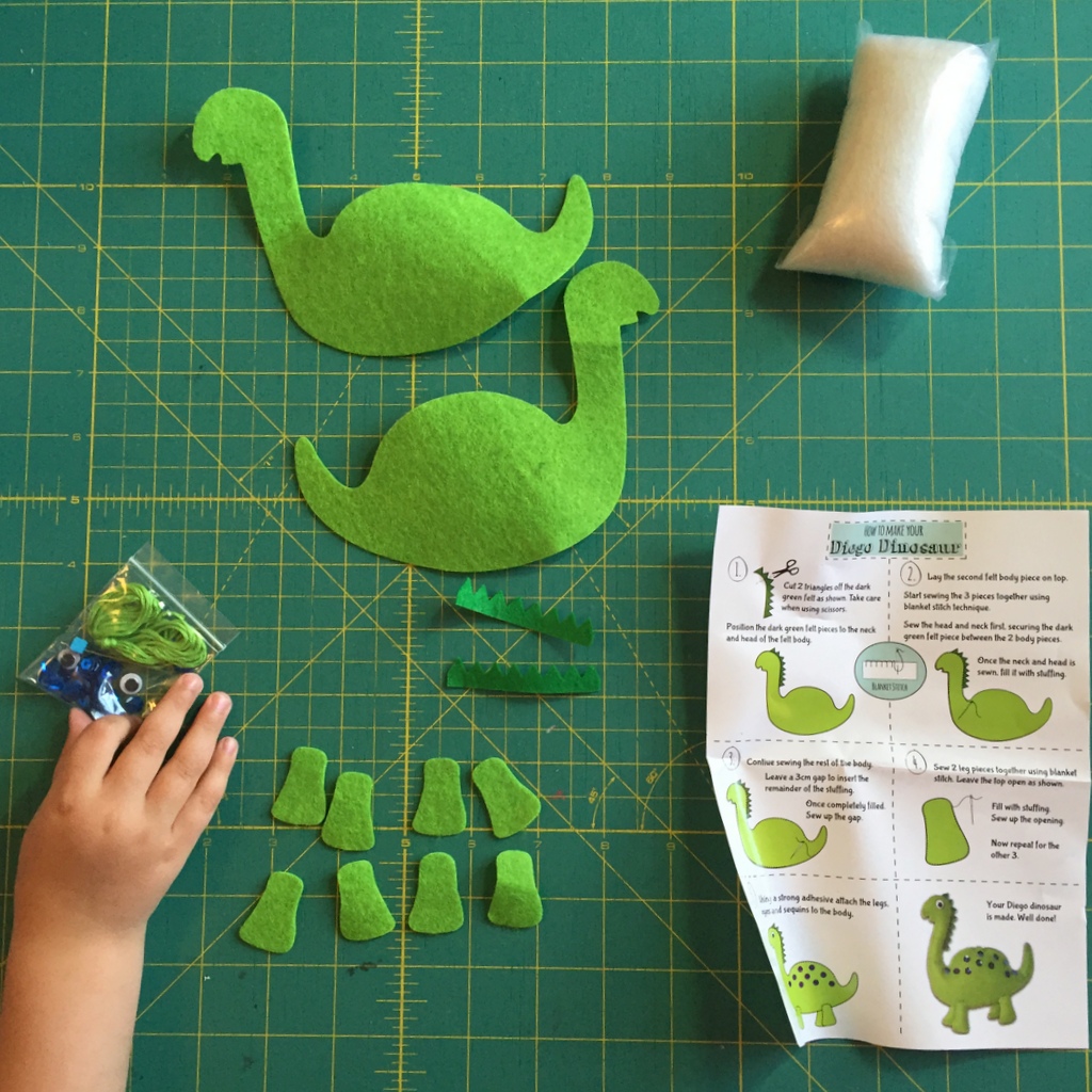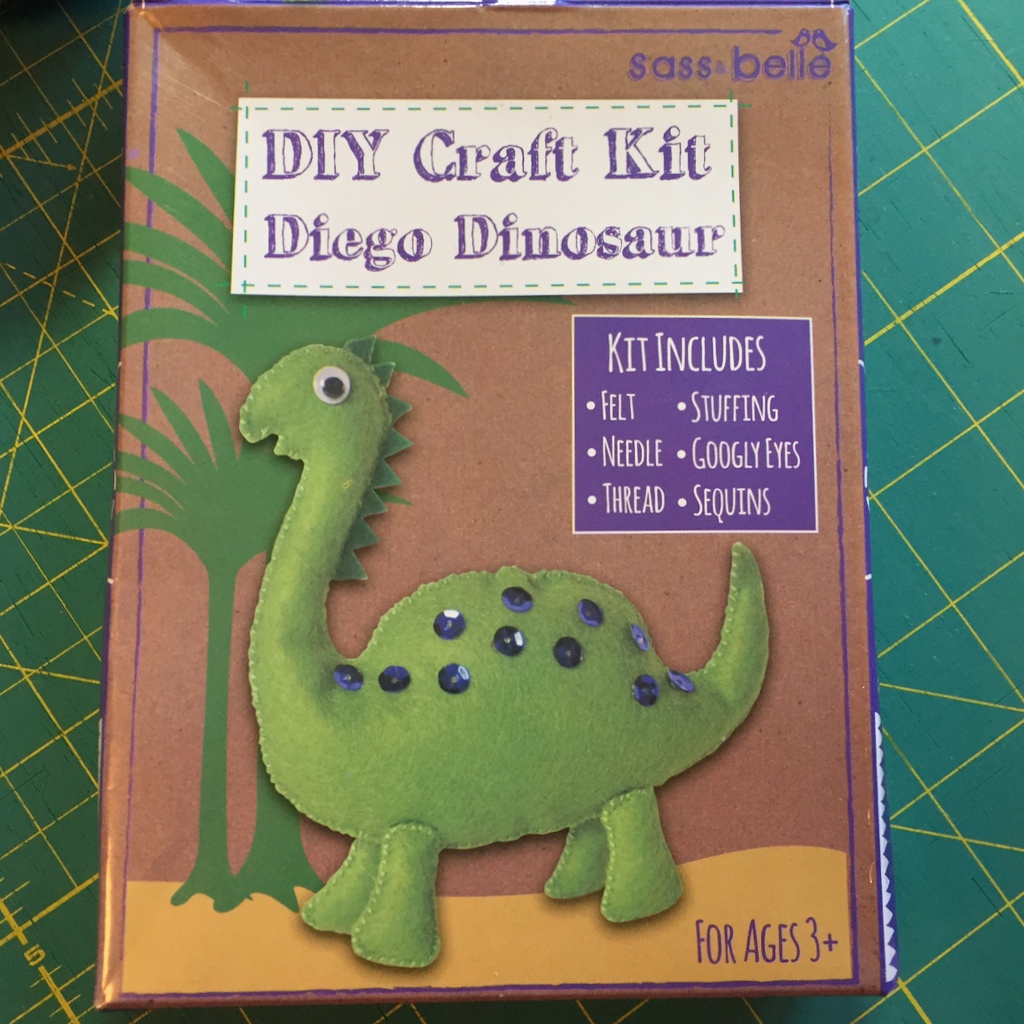 I’m not even sure if I can count this as our first sewing project, but it’s our first attempt. I bought this adorable dino kit on our UK trip and thought it would be a really good place to start with H and sewing.