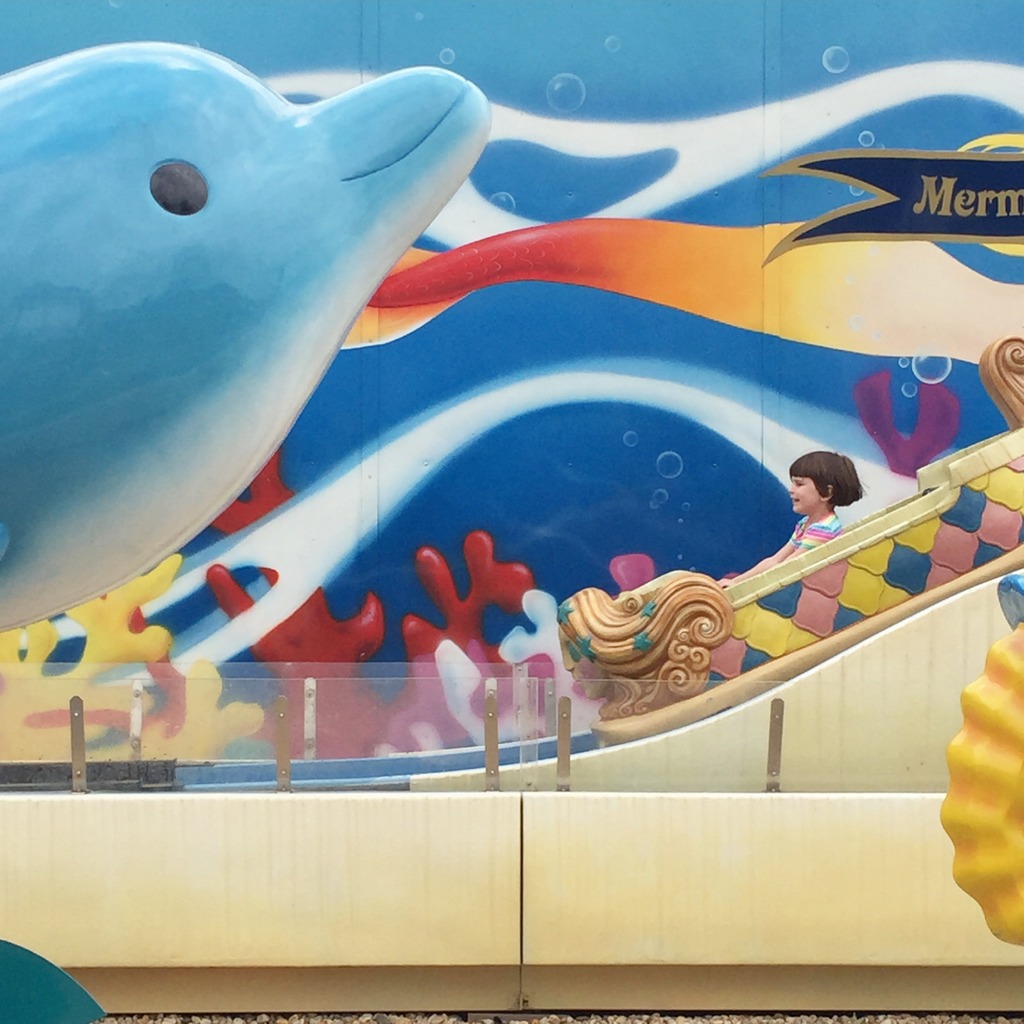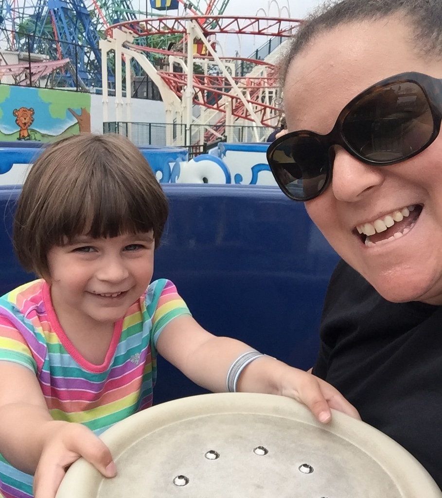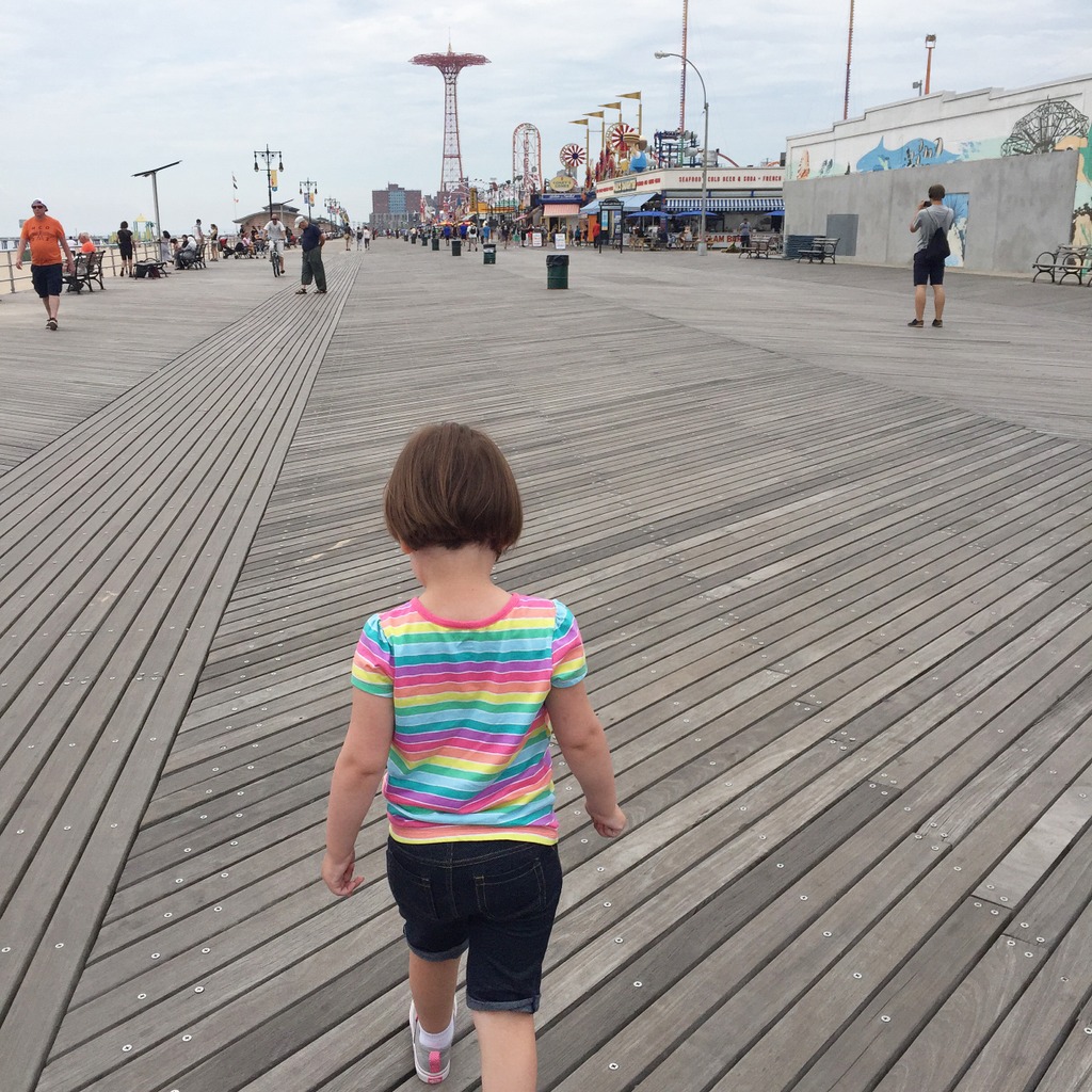 Then we headed over to the Coney Island boardwalk. My mom found a spot with covered benches to look at the ocean while H and I did a quick run over to the pier to ride a few rides.