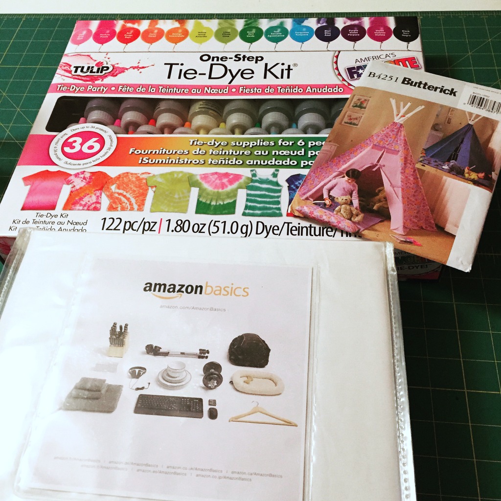 The tie dye kit was about $20, and we’ll get a few more projects out of it. We only used 6 of the 18 colors. The Butterick pattern was $7, and those Amazon Basics white sheets were the best deal. $6.35 for a queen set of sheets, I got 2 sets and still have a flat sheet, the pillowcases, and most of a fitted sheet left over for future projects.