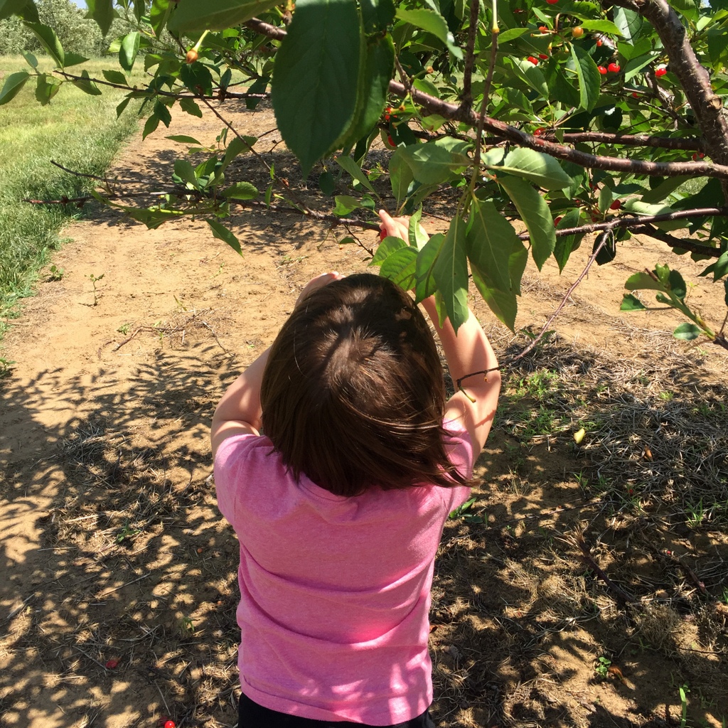 Cherry picking is still H’s favorite of all the fruit pickings. She just absolutely loves cherry trees. This year’s sour cherry season was insanely short, less than a week. Battleview Orchards opened on a Monday, we were there on Wednesday, and by Friday they were picked clean.