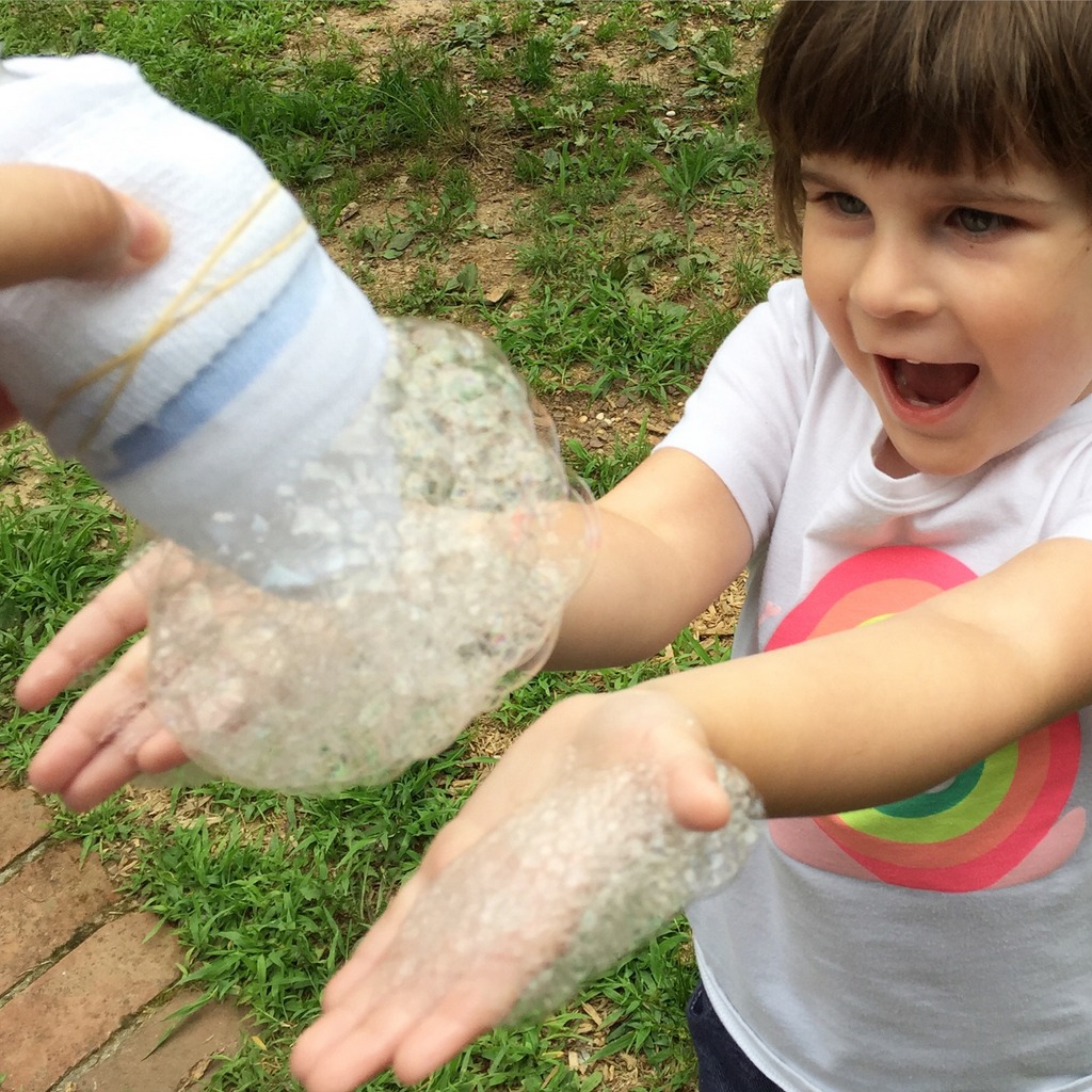 And the day we were there, the Bubble Lady taught us how to make cool bubble blowers out of socks and water bottles.