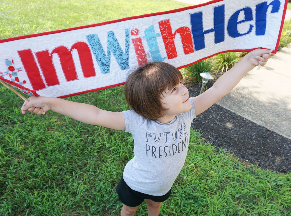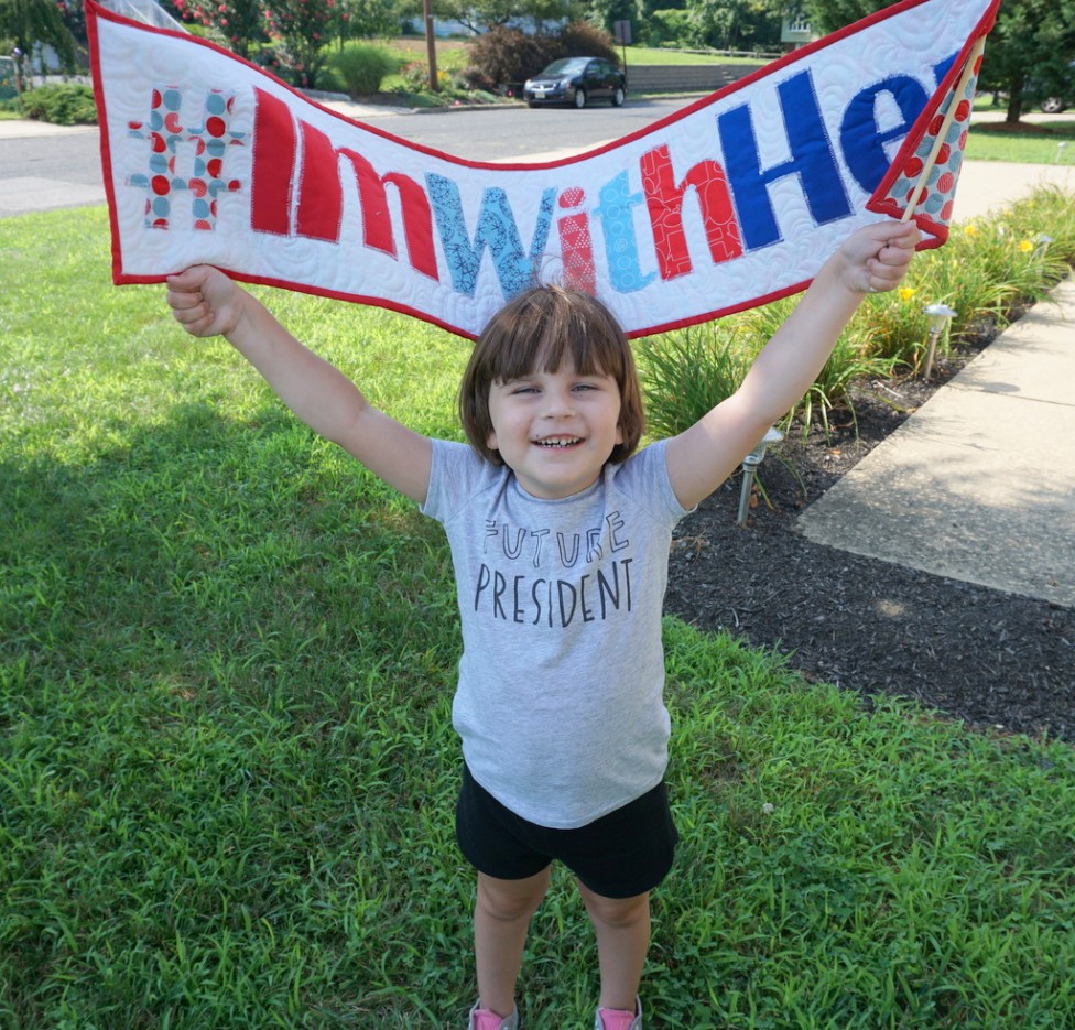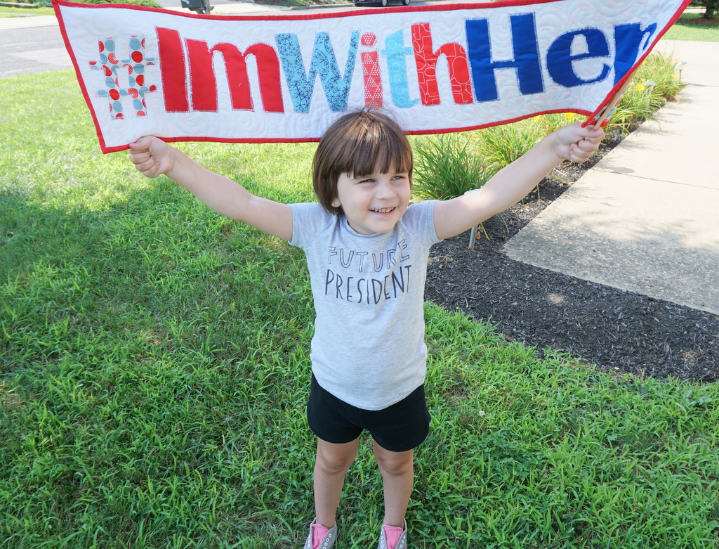 But I made it for this little girl. This is how I express my feelings, I pour them into fabric and thread. This year is so divisive, but someday her t-shirt might be true. And whatever politics and values and beliefs she, or any other little girl, grows up to cultivate, whether they align with HRC or not, they’re a little closer to actual reality now than they were a week ago. Because of this nomination. And that’s so huge.