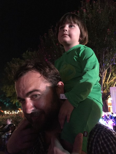Then I took some photos of the parade and the castle during the fireworks show. And, I now realize, that is it. The park looked amazing, but sometimes you’re just too busy enjoying something to bother taking photos of it. All I can say is, I can’t recommend the Halloween party enough. It was so, so excellent. And Uncle Thomas kept H up there on his shoulders through the whole parade so she could see, it was some champion Uncling.