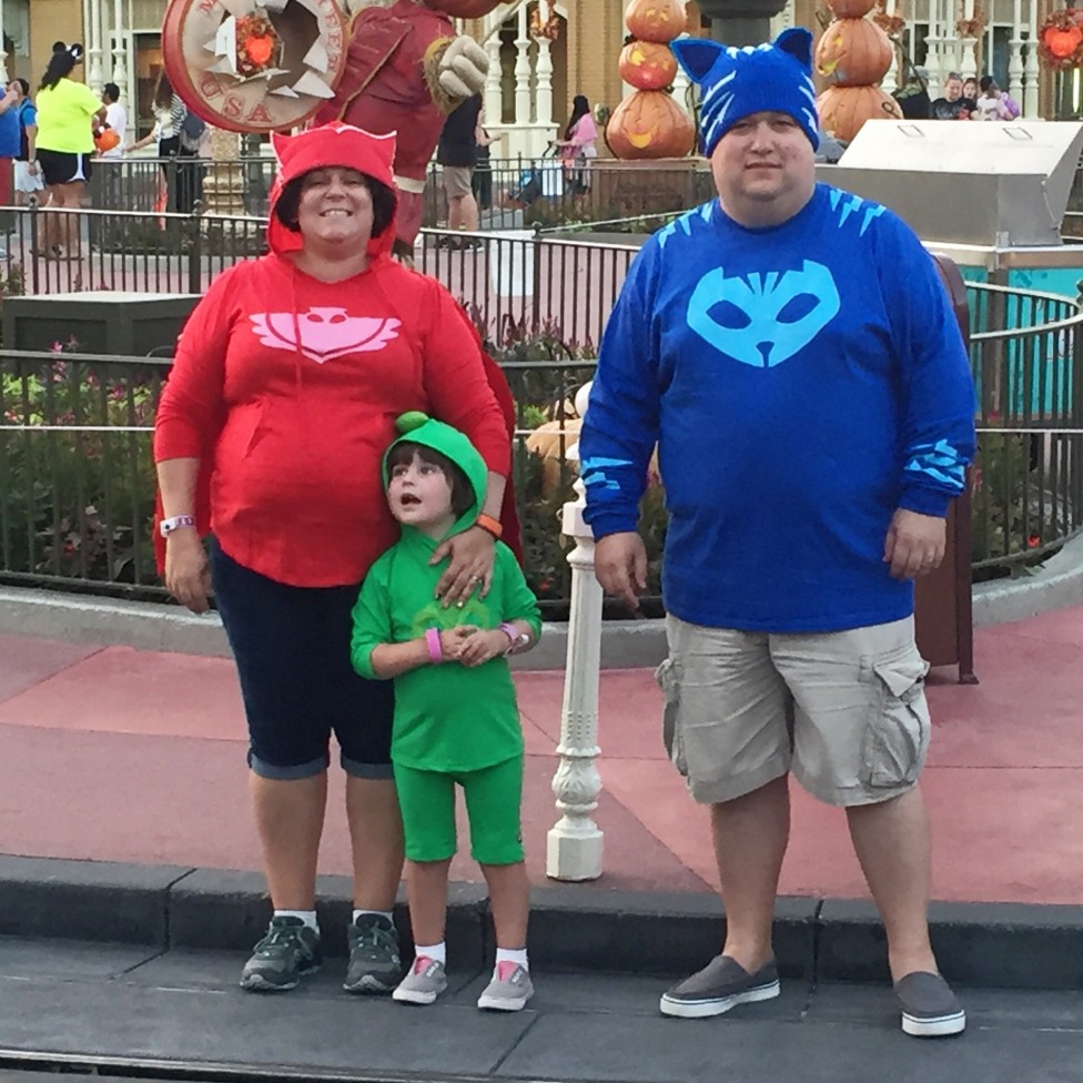 We are dressing up as a family like the PJ masks too. I am looking for basically exactly what you and your husband are wearing.