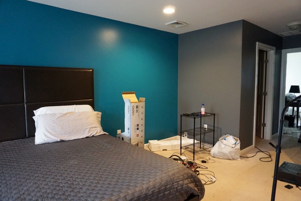 This was our room before, when it was also not super clean (we knew we were about to move stuff all over). The bed has now flipped to the opposite wall, which is also now the teal wall.
