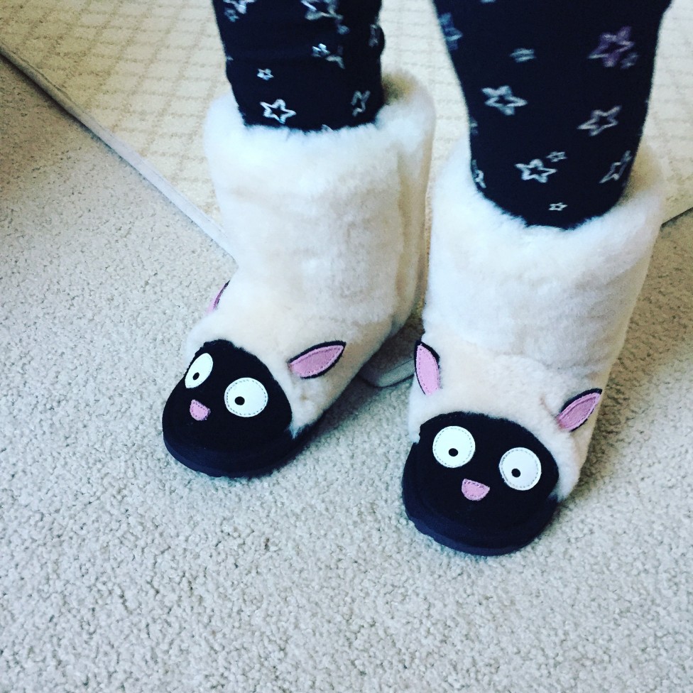 These are H’s new fall boots, and I’m obsessed with them. She’s been wearing them since mid-September already, but I haven’t posted about them. And I keep getting asked where they came from. They’re Emu Australia boots, but I got them from Zappos. They come in a bunch of different animal designs. H picked the lambs, and I think she has excellent taste.