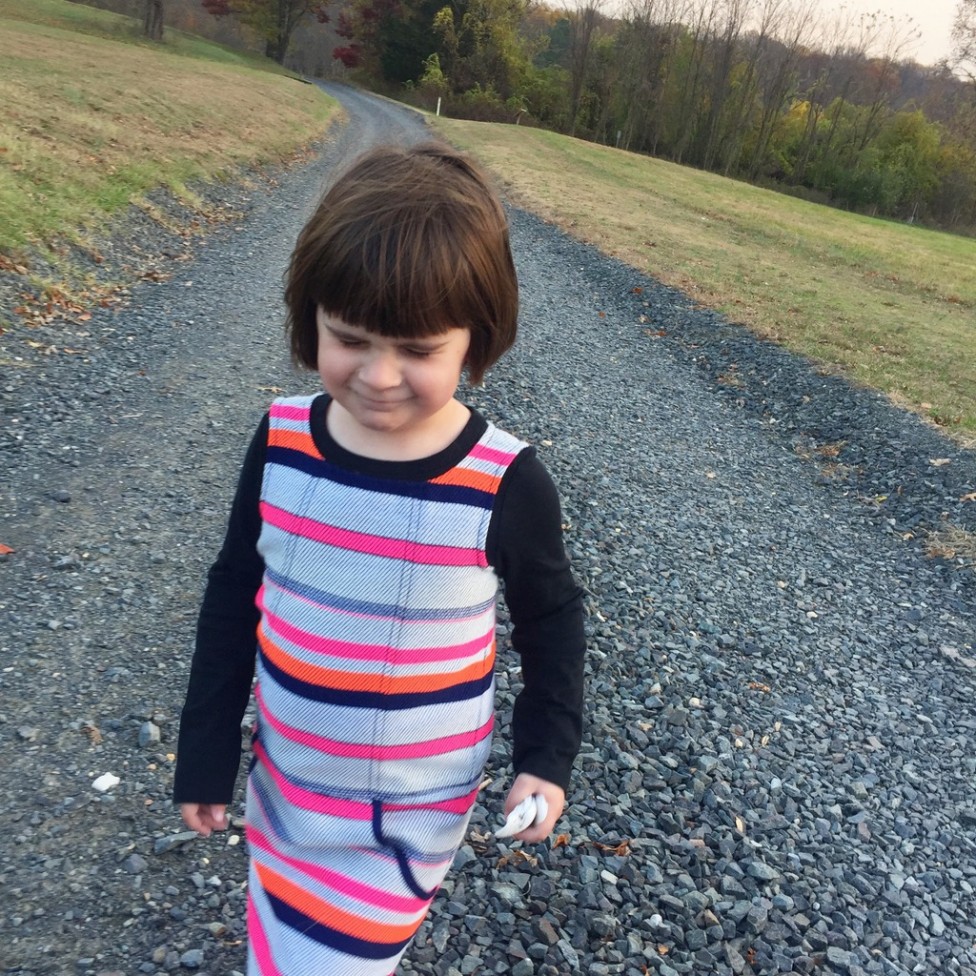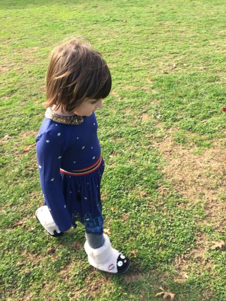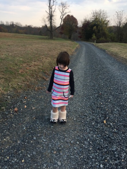 She turns away from the camera, squeezes her eyes closed, runs away. I get it, kid. But this is a tradition, and we’re doing it. It’s not easy, but at least we have a pretty adorable small human to keep us entertained. And, we did get a great photo in the end.