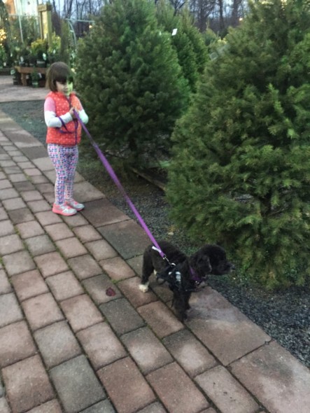 H was pretty grumpy by the time we got to the tree, we left her stuffed animal in the car. She was determined to be grouchy about it.