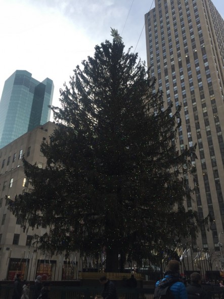 The week before Christmas I got everyone up at 5:30am to go see the tree in Rockefeller Center. Adam and I thought, Let’s beat the crowds! Let’s get there around 8am, before rush hour is even in full swing! And then on the way out the door, Adam said, Let’s bring the dog! Which I was not prepared for, but we did it. We picked up my mom on the way. We didn’t get there until 9, and we didn’t have any mess bags for the presents Hamilton decided to deposit around Midtown, but we made it work with a good sense of humor and my mom’s improvising.