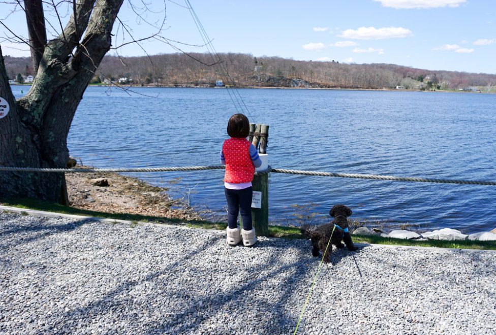 We really only spent two full days in Mystic, but on Good Friday we had a lazy morning at the hotel and then headed out with Hamilton in tow to grab lunch. We went to Sea View Snack Bar, right down the road from Mystic Seaport, and sat outside with him eating lobster rolls, french fries, and hot dogs. He had his very own hot dog, he was in his doggy glory.