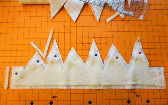 Cut notches into all of the spaces between your crown’s points. I made about three different versions of this crown before figuring out that this step was necessary to get your crown to lay flat. When you turn it right side out, you need that fabric in between the crown’s points to have some give so it will lay smooth.