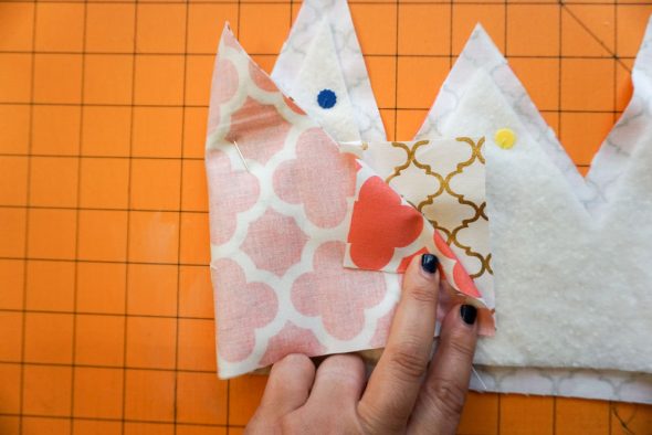 Turn your crown right side out, using a knitting needle or skinny paintbrush handle to push out all the points as far as you can get them (without poking holes straight through the fabric, which I have done on many occasions).