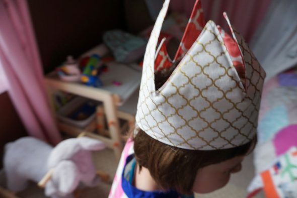 This one is an oldie but a goodie, a tutorial I did for GeekMom back in 2013. The photos don’t seem to work over there anymore, and since H outgrew that original crown a while ago, I figured I’d put up the tutorial here, too. With a few tweaks and new photos. I’m just now making her a brand-new one because we are obsessed with all things princess lately.