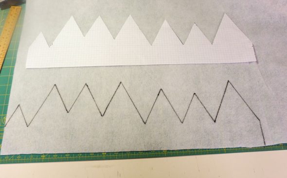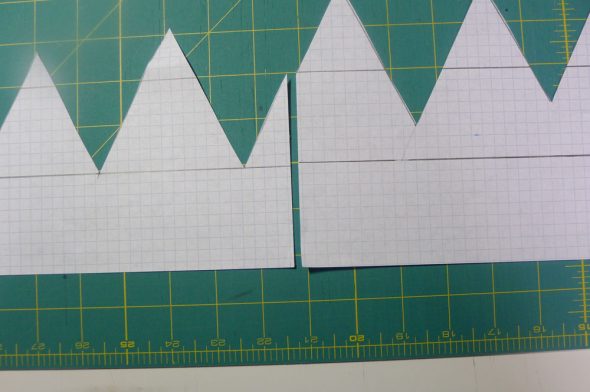 When I first made this I left the last point at the right edge as an unfinished triangle. So when I cut out my template and line up the two halves of the paper I have a nicely aligned edge to tape together.