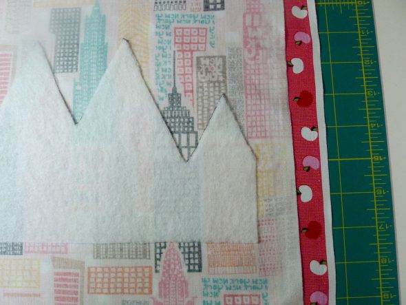 Measure your child’s head and then add 3.5″ for seam allowances and to give them some room to grow into it. My daughter’s head is currently about 21″, and I want this crown to be able to grow with her, and since I have a 24.5″ long ruler, that’s the width of the fabric pieces I cut.