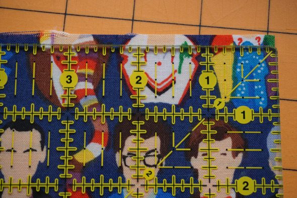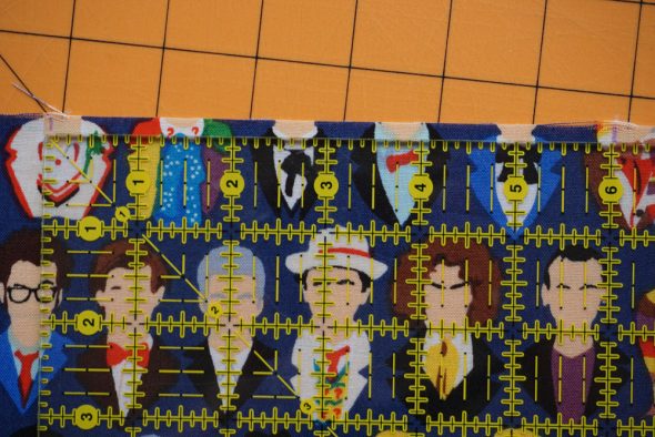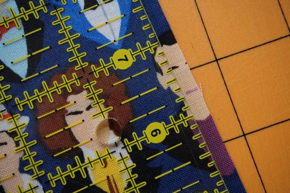 Along the top and bottom edges of the fabric, I measured in 3.25″ from each side and marked it.