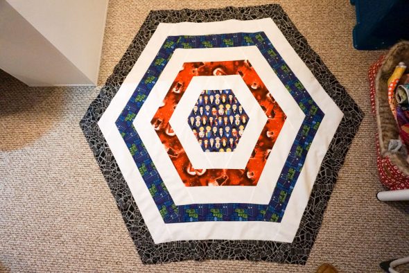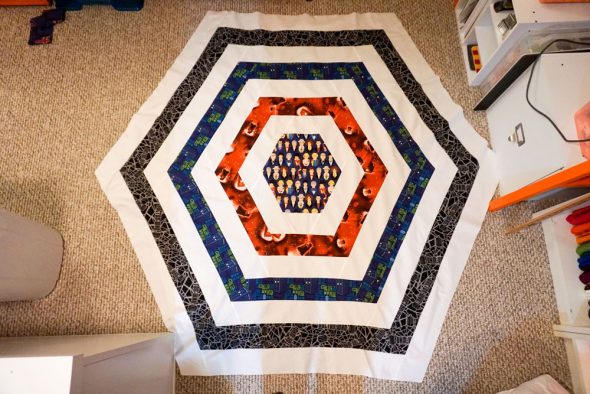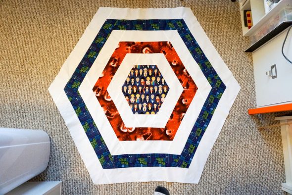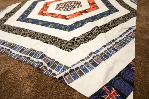 I started this quilt back in April to get ready for the newest season of Doctor Who, and then life happened and I put aside the finished quilt top for a couple of months. Then when the 13th Doctor was announced, I got inspired to pick it up again. I finished it over the weekend, and here’s a loose tutorial so you can make this one, too!