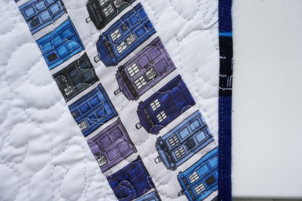 The backing is improvised piecing, but I liked the idea that it kind of vaguely referenced the TARDIS.