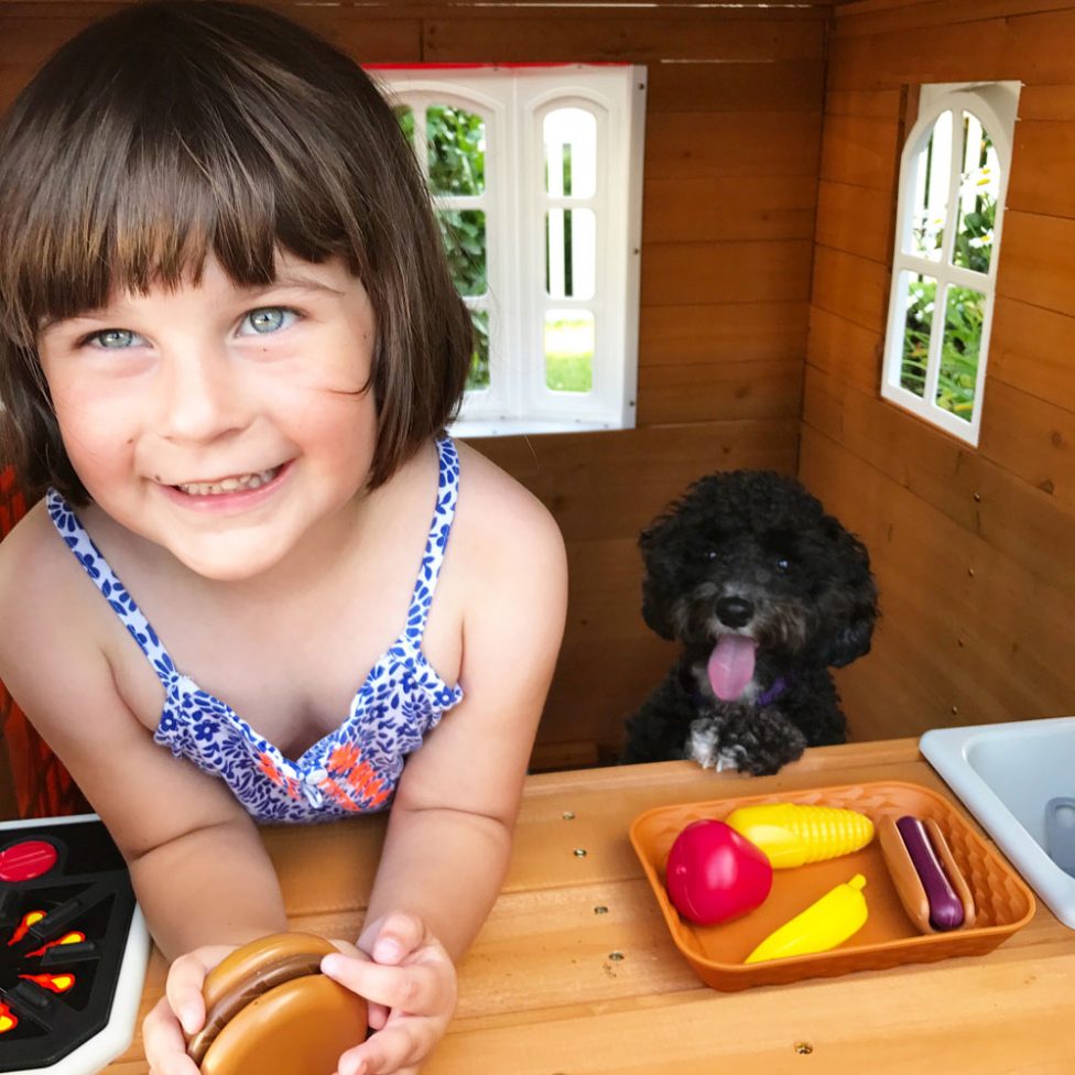 So this is incredibly fun for me, seeing how much she loves it, and how much the dog loves it. I was not expecting the two of them to both hang out, but he trots in there with her when she goes.