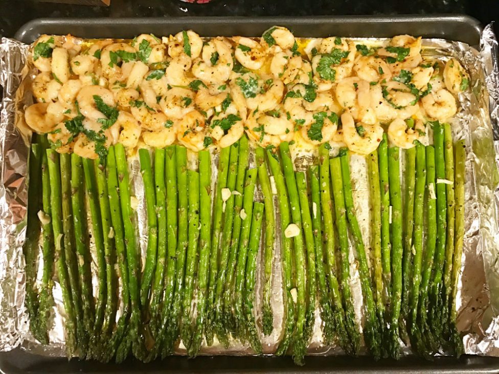 This is yummy, no carb, easy on a weeknight if you can get some good shrimp. I found this one on Pinterest, from Carlsbad Cravings. This kind of recipe is everything I want for a weeknight. It takes no time to put together, and I don’t have to be at the stove watching it, but it still looks pretty when it’s done. I love thin asparagus–my favorite vegetable next to Brussels sprouts. It’s pretty light, like a summer meal, but the weather has been so mild this fall, until the last couple of days, that it’s still been good light dinner weather.