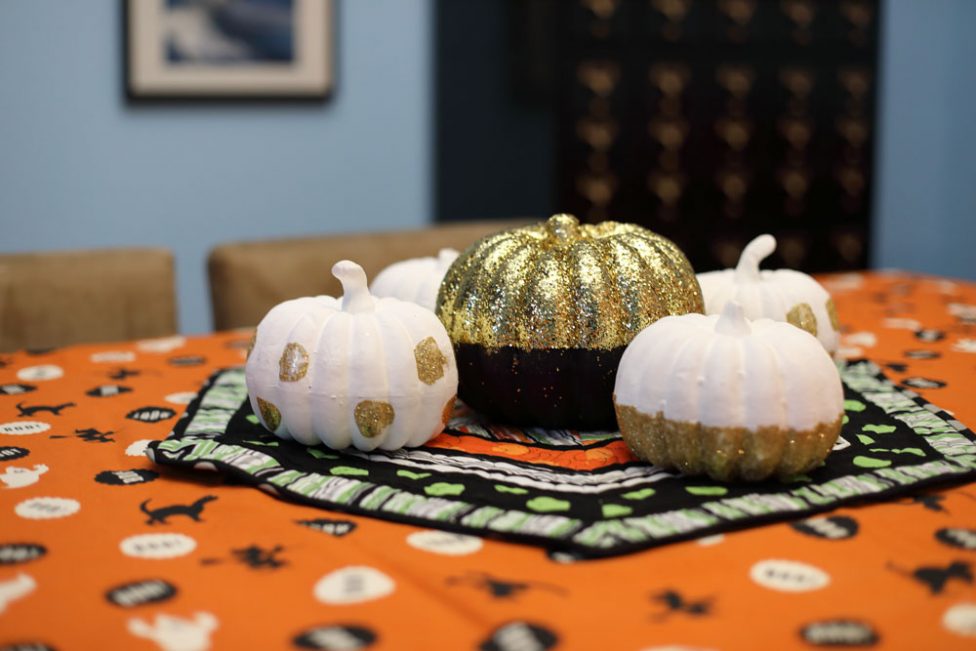 A lot of our Halloween stuff is homemade, too, which is the other challenge. I have to actually make stuff every year (Halloween quilt is almost finished, photos coming soon). This year–other than the quilt–I didn’t plan anything else. I actually made those glitter pumpkins for Thanksgiving last year, and I have a video tutorial for them! I think I’ll set some calendar dates in late summer to remind me and get me prepping, which is what I do for the Christmas season. I have annual calendar reminders that ping me and help me stay on schedule for things. Maybe next year that’ll be Halloween, too.