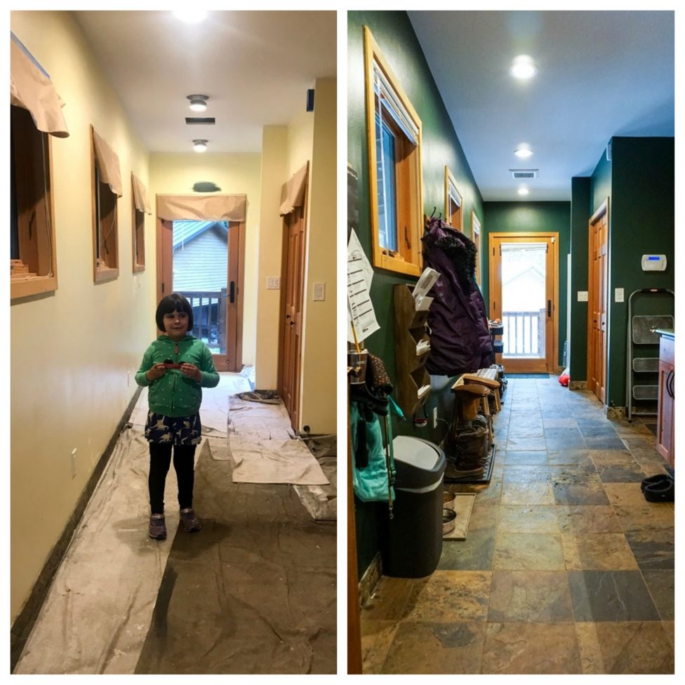 I didn’t take many photos of the space before we painted, but that’s the only work we did in this room. We took the walls from this yellowy white that was all over the house and painted it Dard Hunter Green from Sherwin Williams. We also painted our front door this color, so you can open the front door and look straight through to the mudroom to see the color repeated (one day I will grab a picture of that, but it’s cold out there right now).